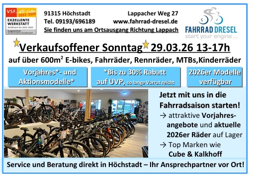verkaufsoffen bei Fahrrad Dresel in Höchstadt